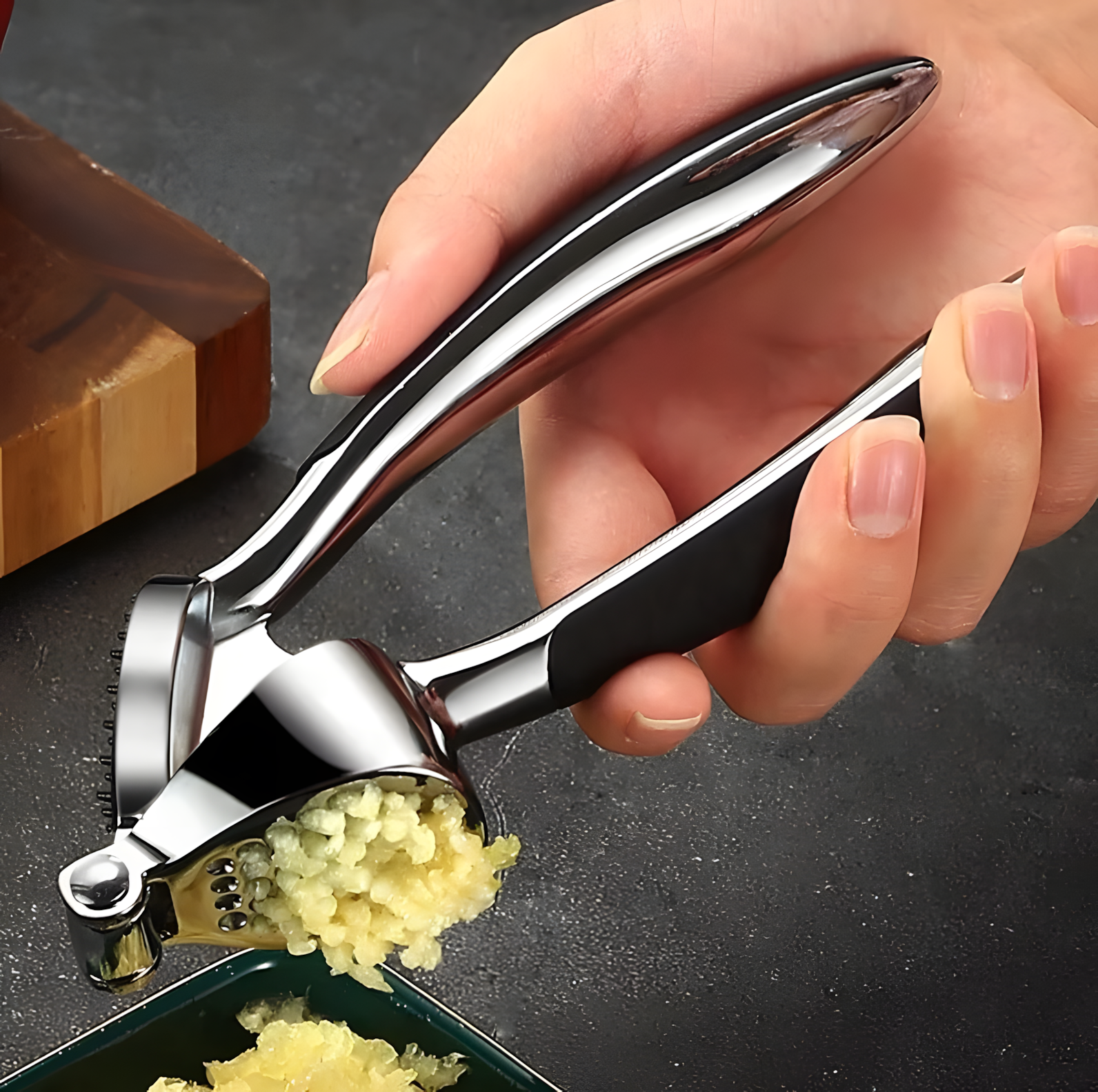 تصميم أنيق من الستانلس ستيل المقاوم للصدأ مع مقبض مريح يمنحك قوة ضغط ممتازة لتحضير الثوم بسرعة وسهولة. أداة أساسية في مطبخك لطبخ صحي وسريع.