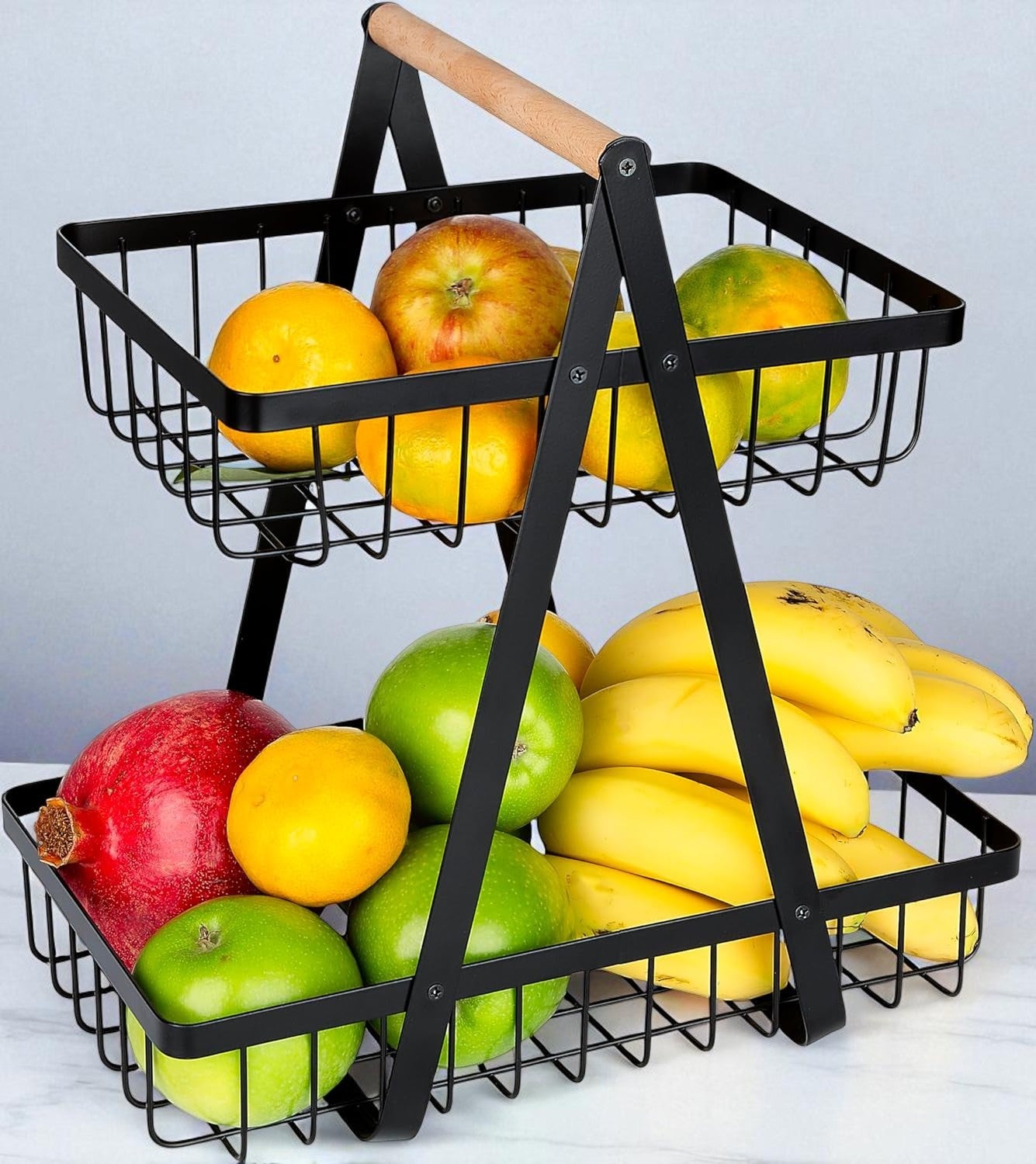 Add style and organization to your kitchen with this 2-Tier Metal Fruit Basket.