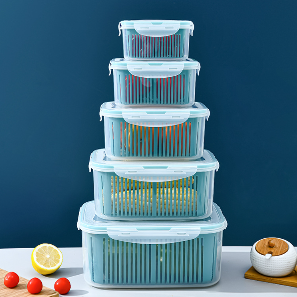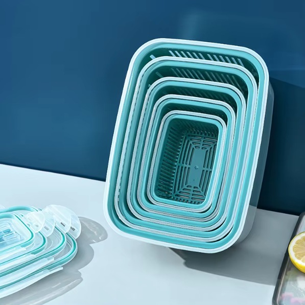 Keep your fridge organized and your food fresh with this practical 5-piece storage container set. Each container comes with a built-in plastic strainer, making it easy to wash, drain, and store your fruits and vegetables without hassle. A smart and stylish addition to every modern kitchen.