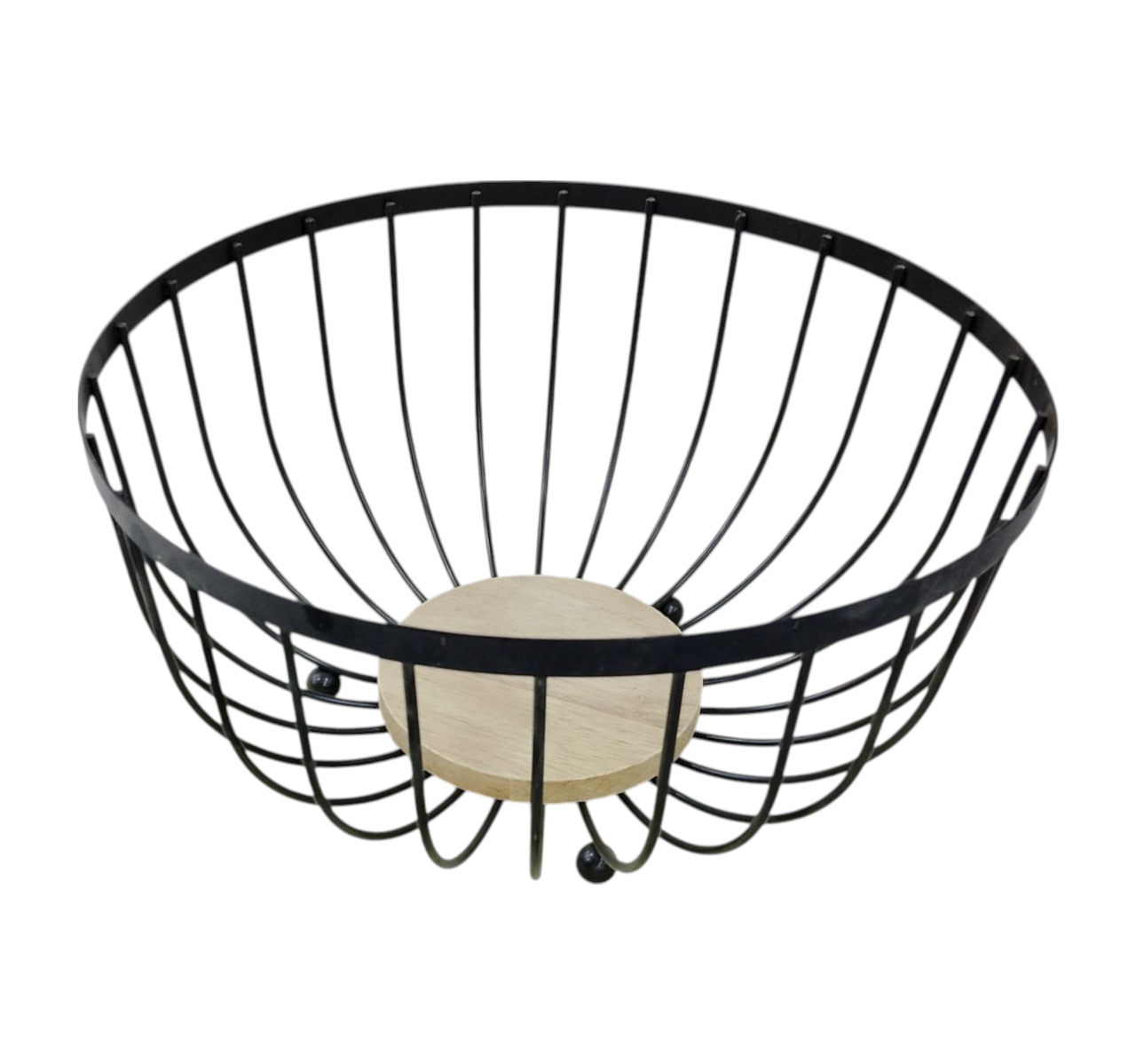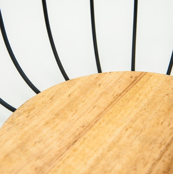 Elevate your kitchen or dining space with this modern metal fruit plate featuring a natural wooden base.