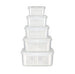 5 transparent storage containers